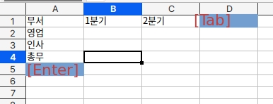 2. Enter 또는 Tab 키를 눌러 다음 셀로 이동합니다.