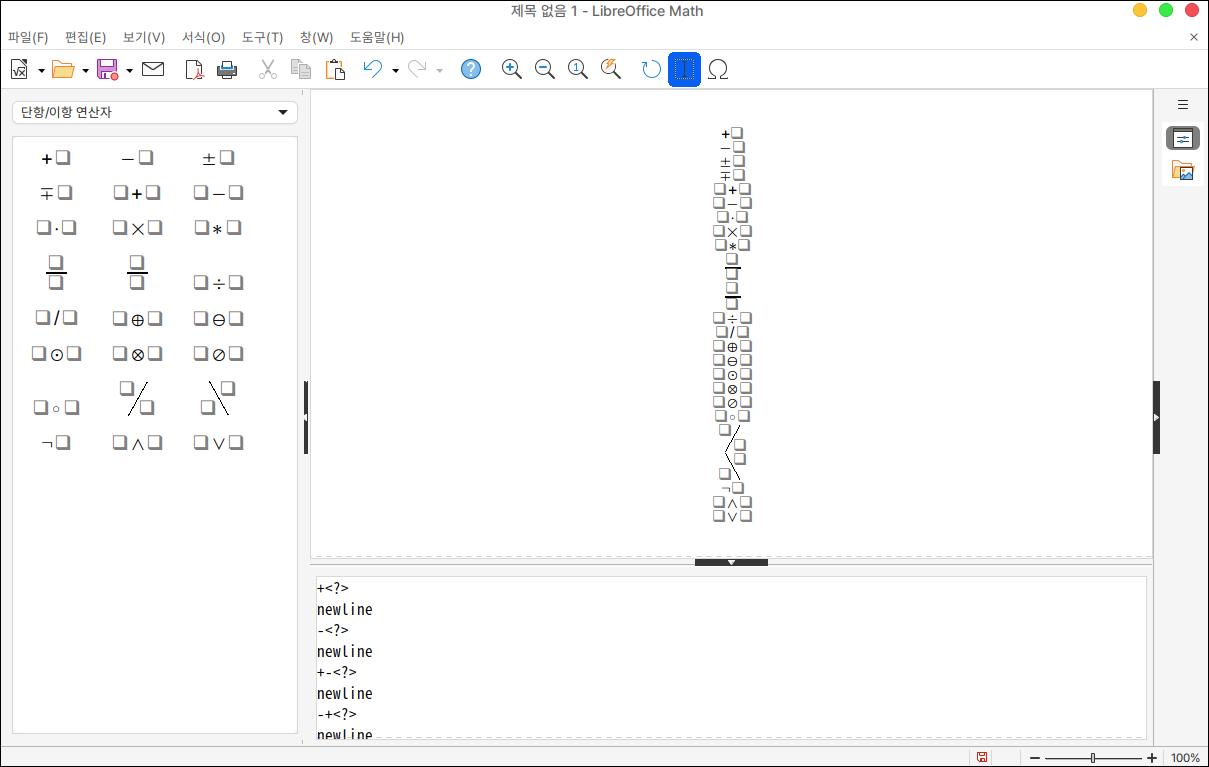 다양한 수학기호를 이용하여 수식을 만들고 해당 수식을 Calc, Draw, impress등에 적용하여 사용할 수 있습니다.