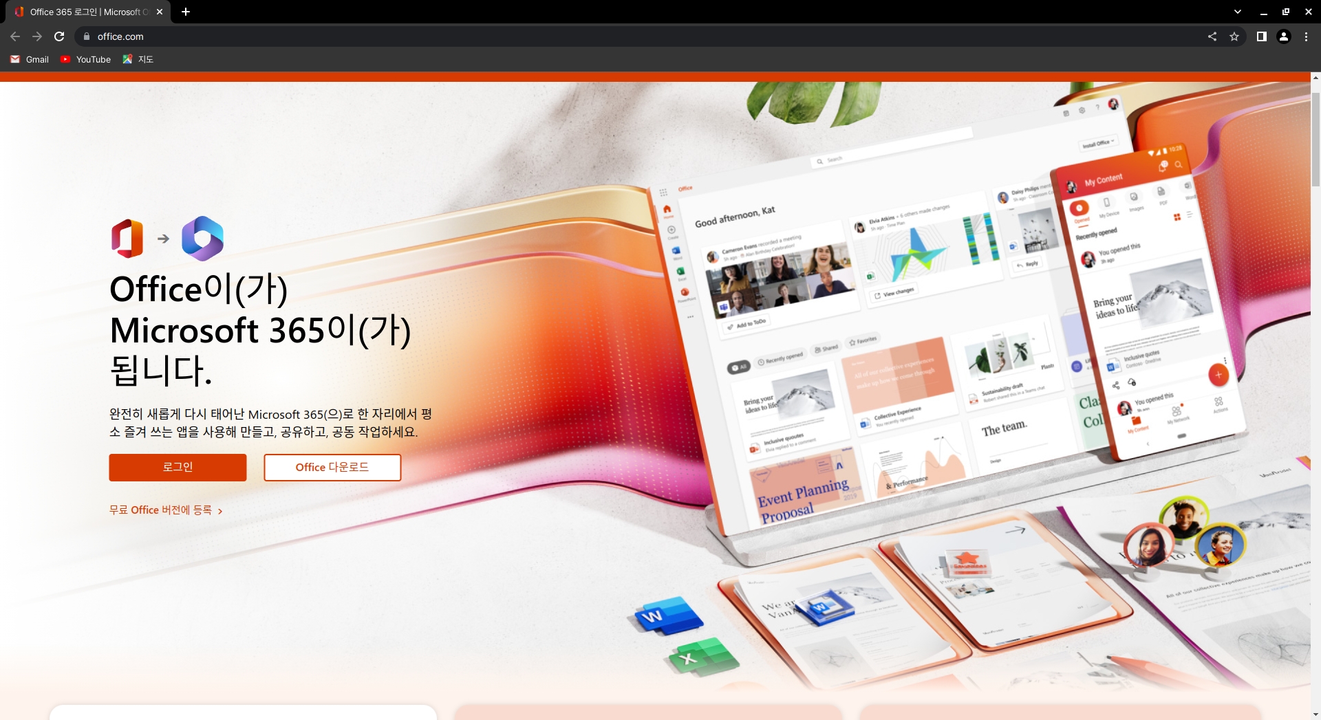 MicroSoft사에서 제공하는 클라우드 오피스 서비스입니다. 기존의 윈도우 데스크탑 애플리케이션과 거의 동일하며 Onedrive를 통해 저장소를 공유할 수 있다는 장점이 있습니다.