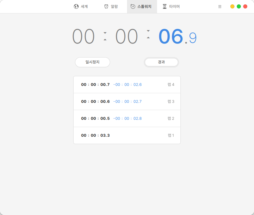 스톱워치와 타이머 매뉴에서 각각의 기능 사용이 가능합니다.