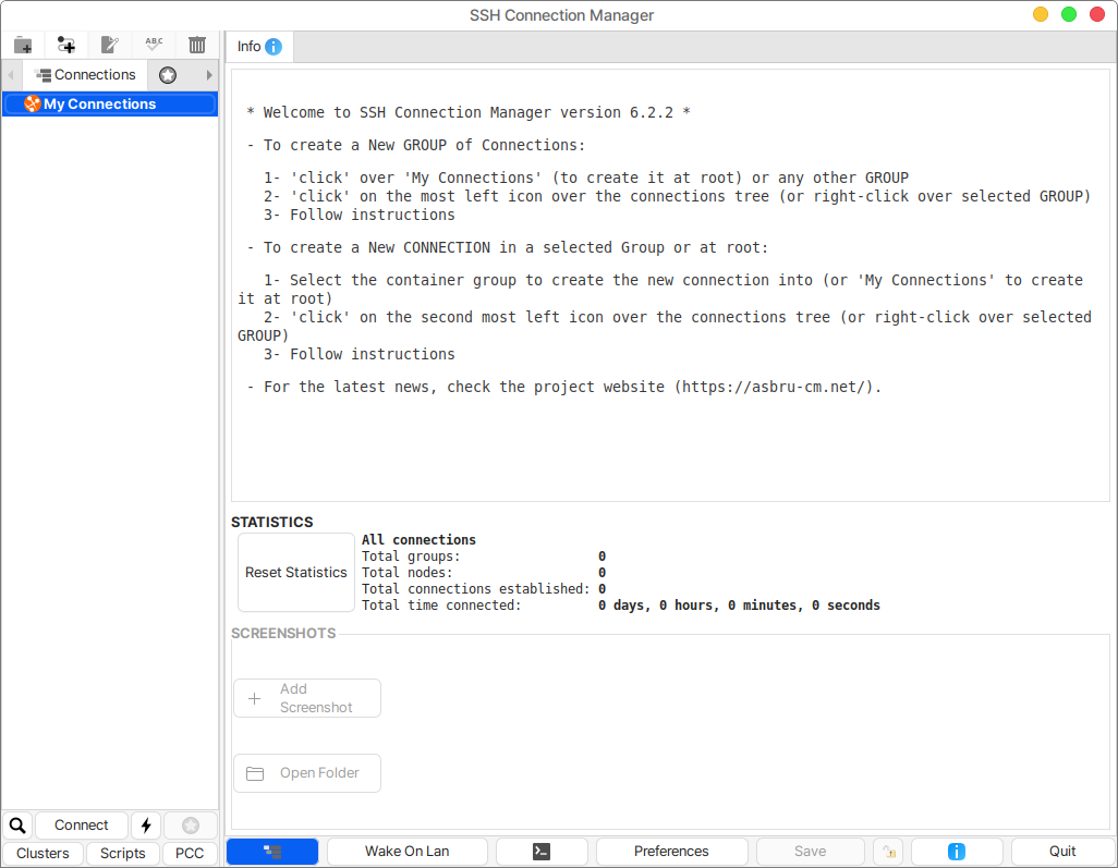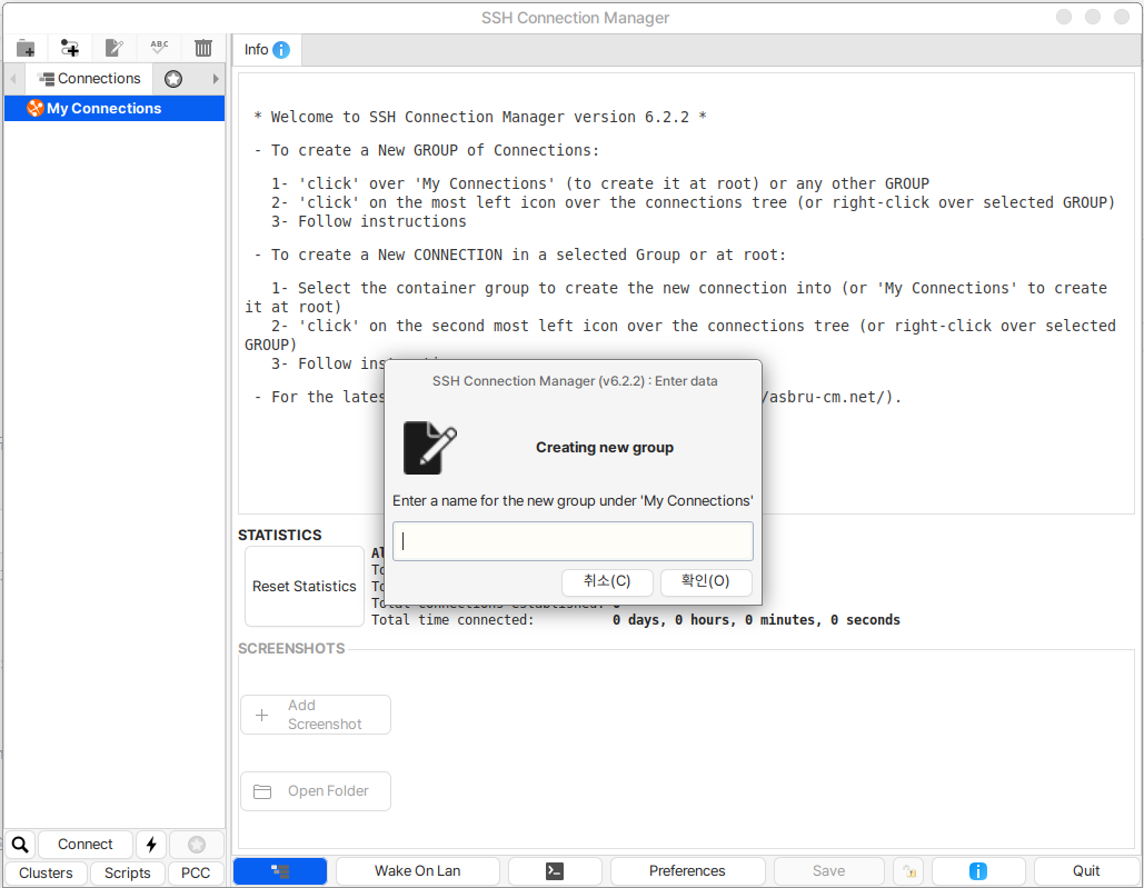 하단의 여러 메뉴들을 통해 SSH Client를 사용하실 수 있습니다.&#x20;