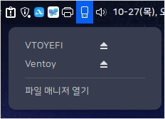 작업이 완료되면 트레이 아이콘의 USB 모양을 클릭하여 Ventoy의 마운트를 해제해 줍니다.