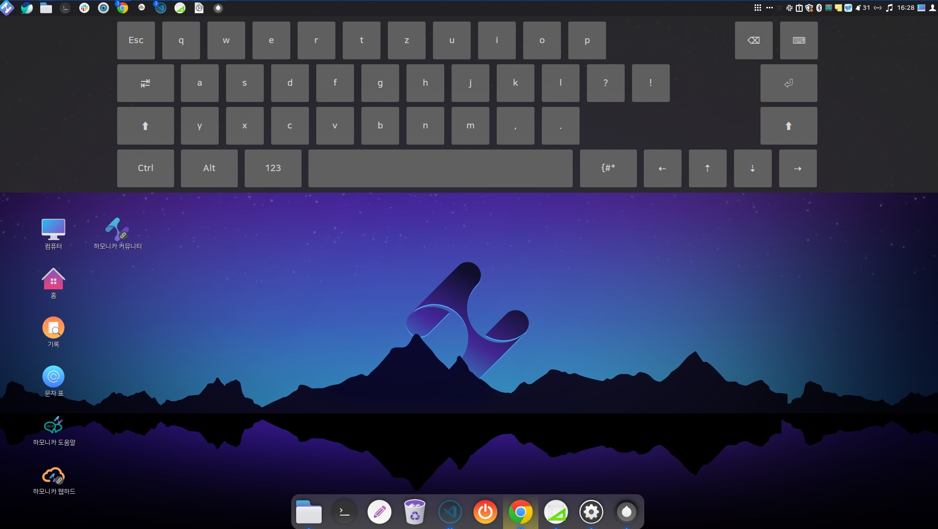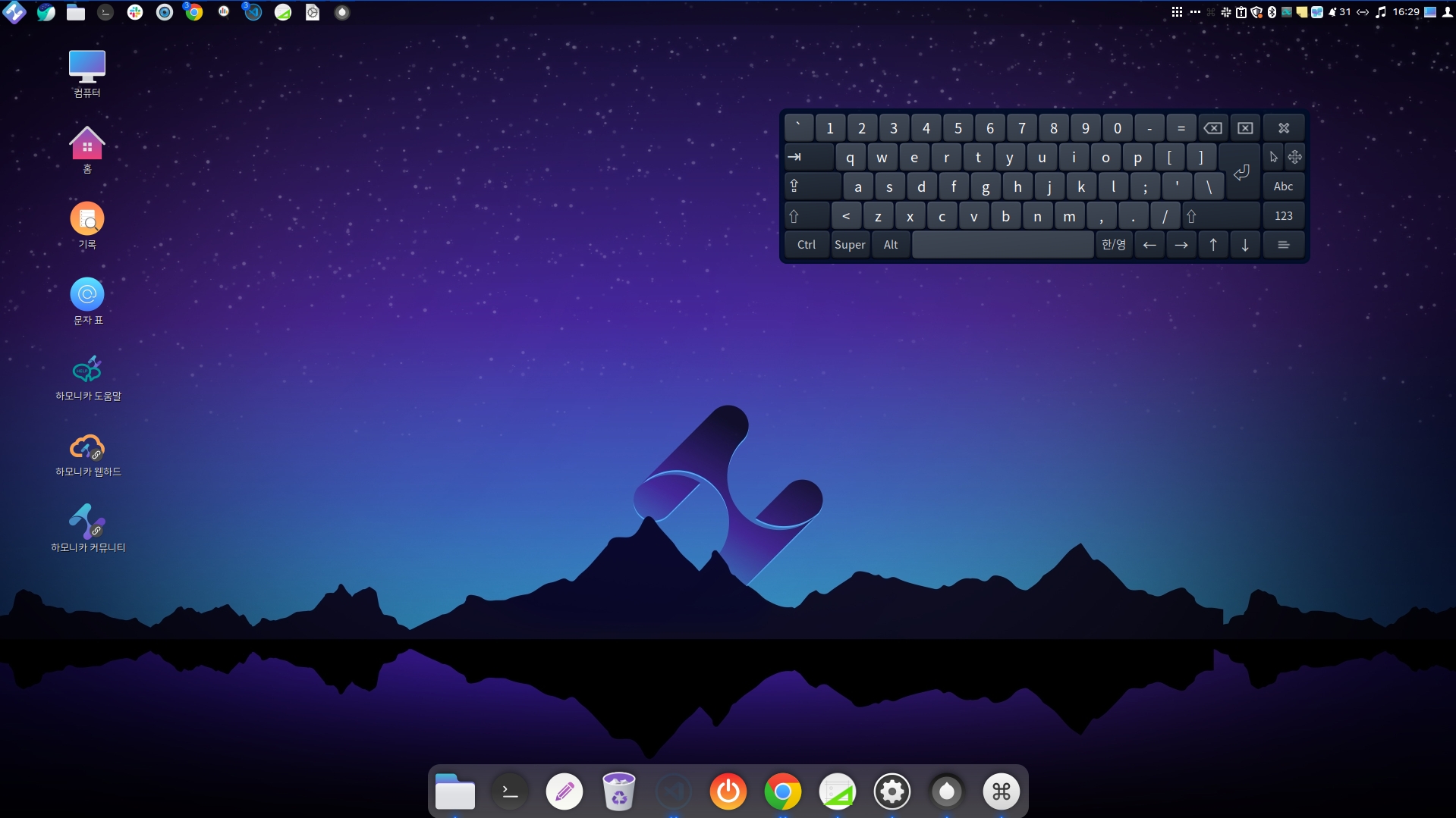 하모니카에는 가상 키보드와 온보드(OnBoard) 두 가지의 가상키보드 프로그램이 있습니다.