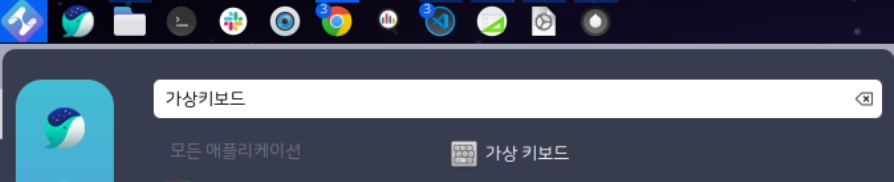 가상 키보드를 실행하면 아래와 같이 화면 상단에 가상키보드가 보여지고 우측 상단의 키보드 아이콘을 클릭하면 가상 키보드를 종료할 수 있습니다. (가상 키보드 이동 불가능)
