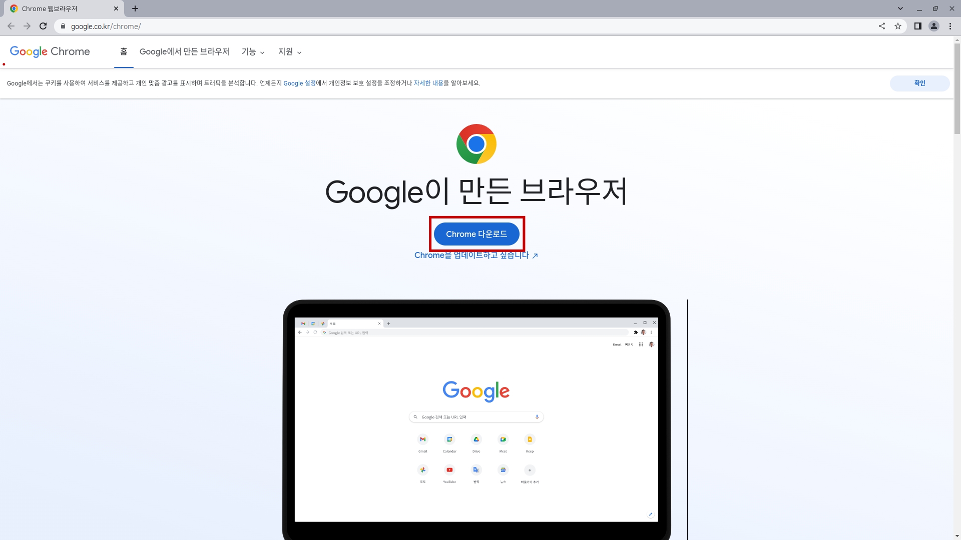 1. 크롬 설치 프로그램을 다운로드 받을 수 있는 사이트에 접속합니다.