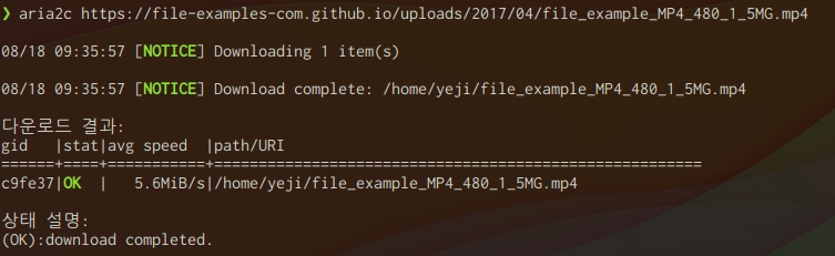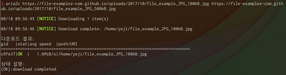 터미널 창에 aria2c --help