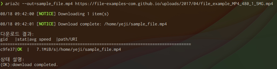 aria2 와 https 링크를 통해 영상을 다운로드 받기 위해 아래 명령어를 입력합니다.