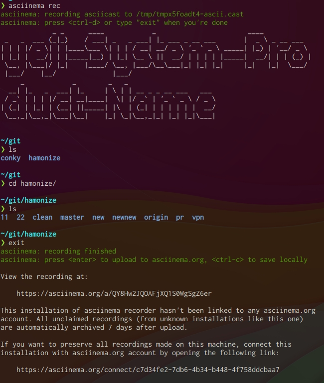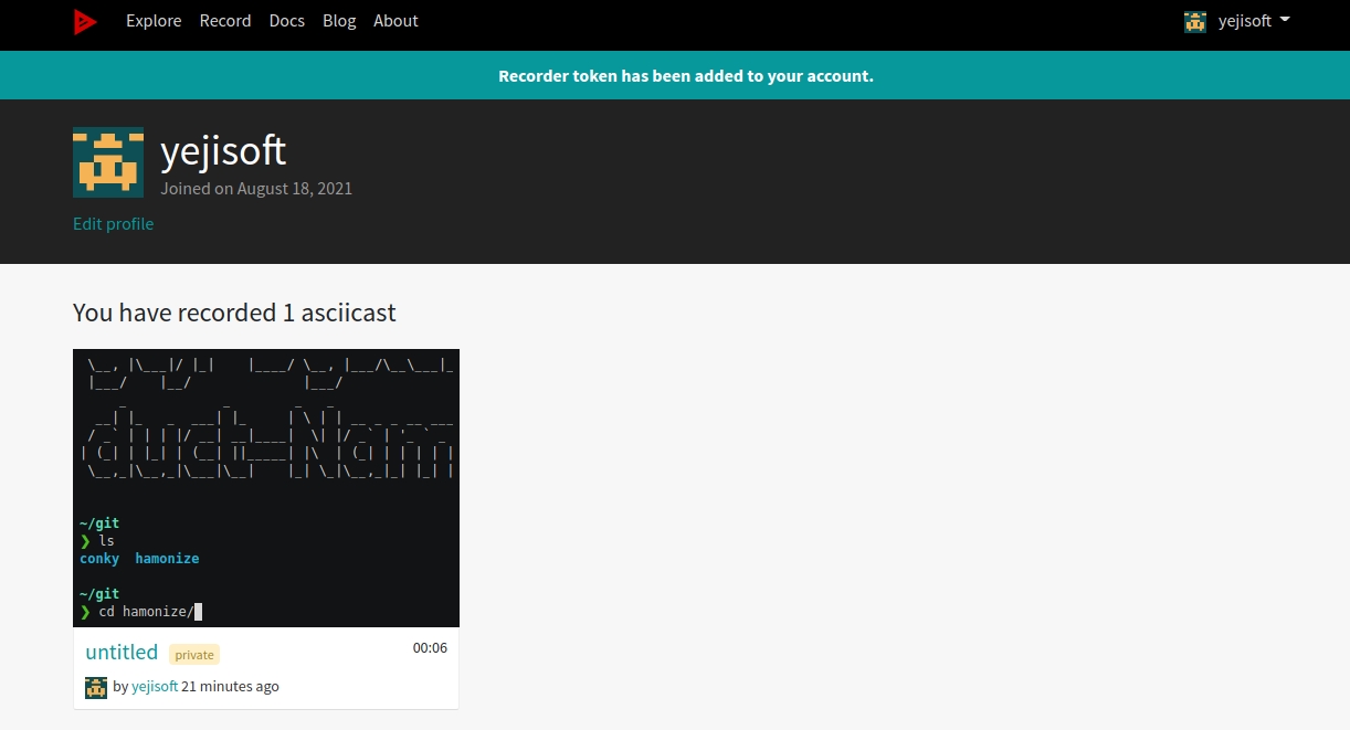 asciinema.org에 가입, 로그인 하지 않았을 경우 해당 영상은 7일간 보관됩니다.