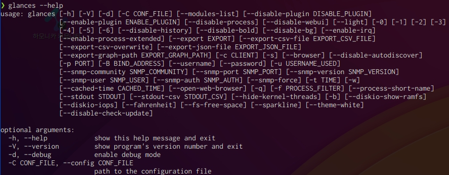 를 입력해 간단한 사용법과 다양한 옵션을 확인할 수 있습니다.