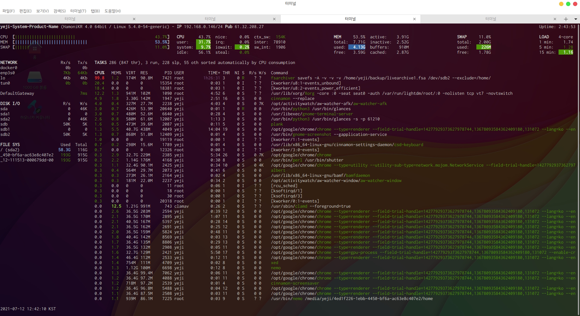 를 입력하면 아래와 같이 로컬 PC의 시스템 정보 모니터링 화면이 나타납니다.