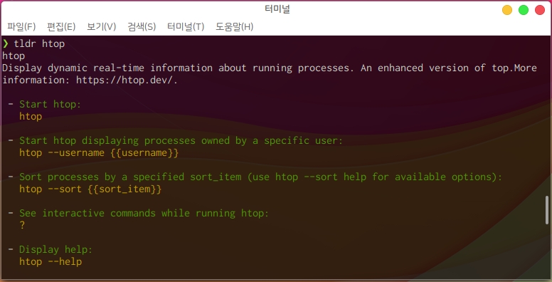 명령어를 통해 각종 리눅스 명령어의 사용법을 쉽게 확인할 수 있습니다.