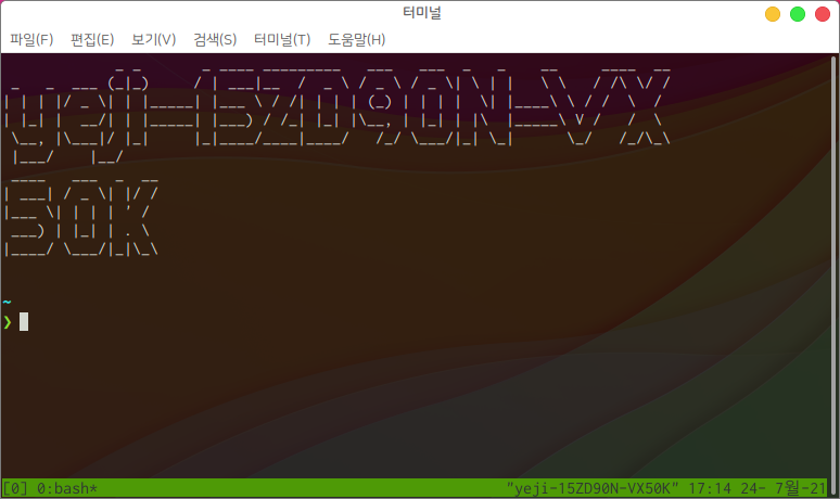 터미널 창에서 tmux 를 입력하면 새로운 tmux session이 생성되고, 해당 세션에 접속됩니다.