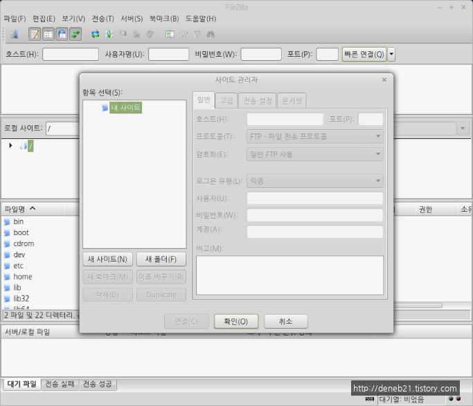 FTP 클라이언트 프로그램 설치 및 사용 - FileZilla