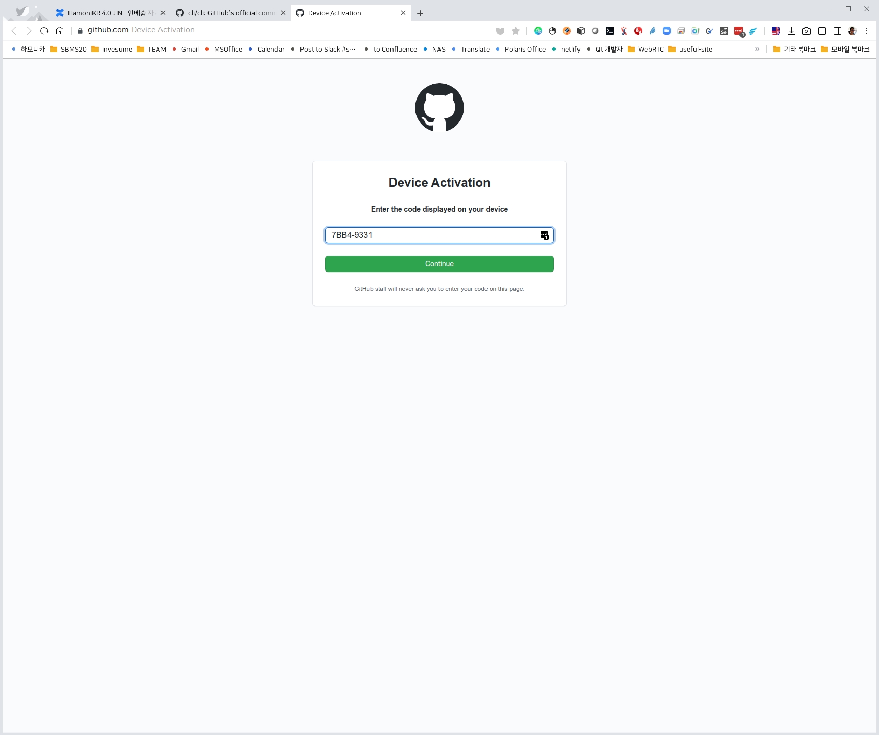 화면과 같이 일회용 디바이스 인증코드가 나오는데 이걸 복사합니다.