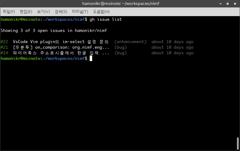 터미널에서 깃허브 저장소의 이슈 처리, PR 관리, 릴리즈 관리들의 유용한 기능을 제공합니다.