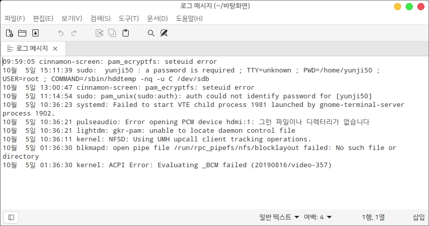 로그 기록 프로그램 gnome-log(기록)