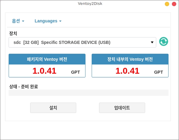 아래와 같이 Ventoy 프로그램이 실행됩니다.