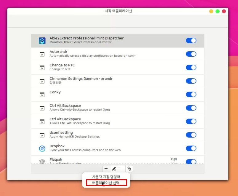 2) 시작 어플리케이션으로 미디어 센터 KODI 또는 Hypnotix 등록하기