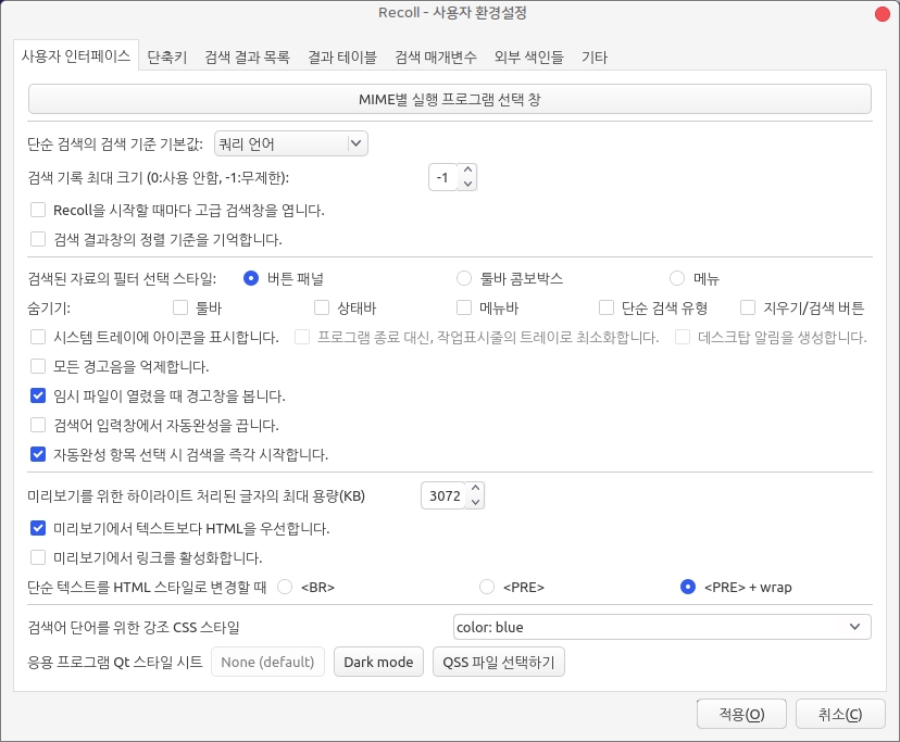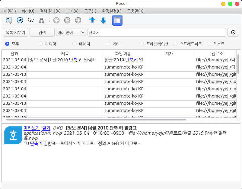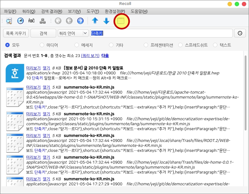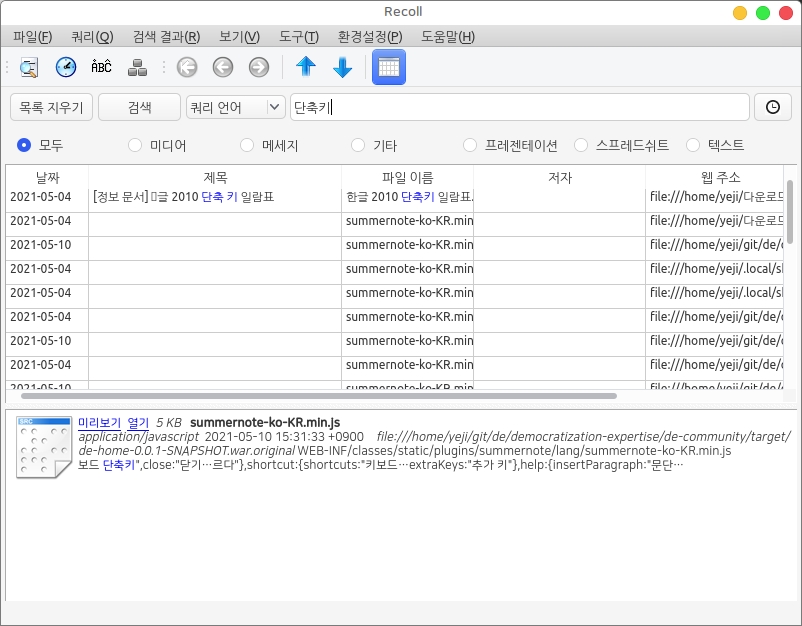 데스크톱 원문 검색 프로그램 recoll