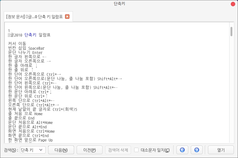 항목을 통해 여러가지 단축키를 확인하고 변경할 수 있습니다.
