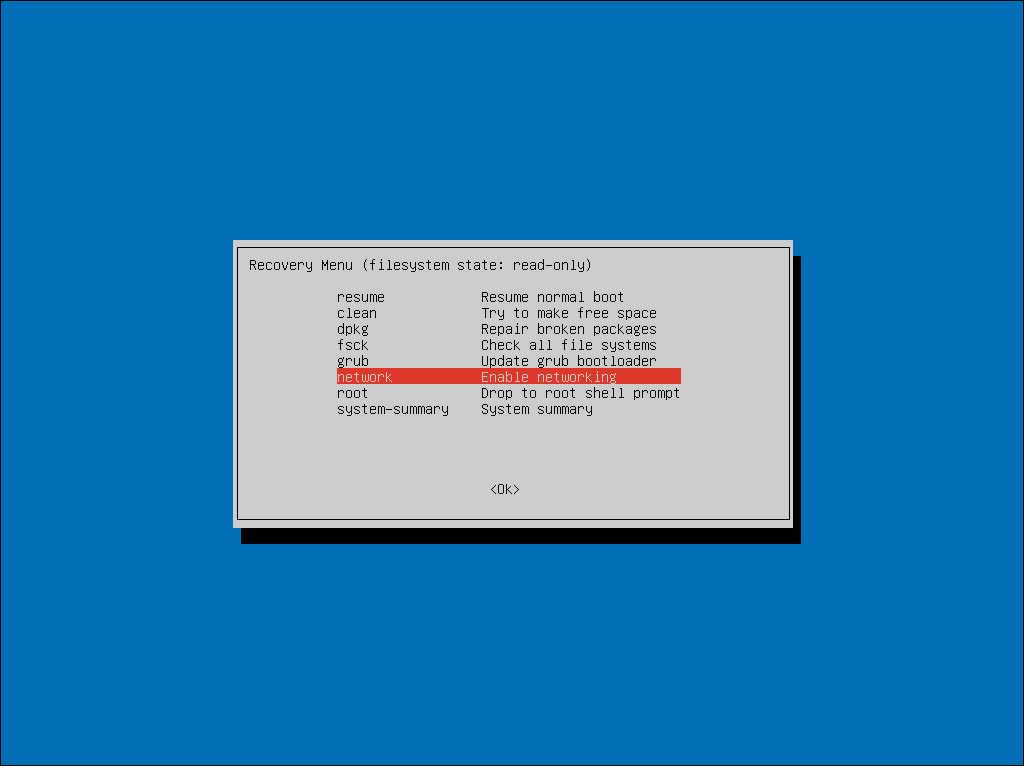 두번 째를 선택해야 recovery mode 로 진입합니다.