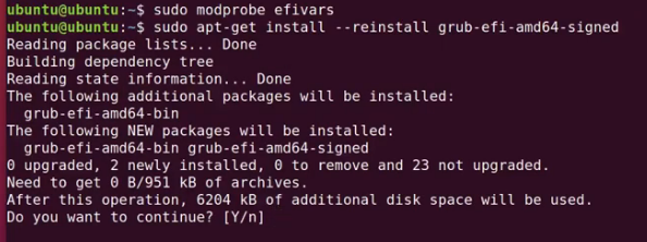 sudo apt-get install --reinstall grub-efi-amd64-signed