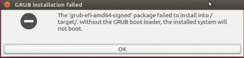 설치를 진행하는 도중에 GRUB 설치를 실패했다는 메시지를 만나는 경우가 있습니다.