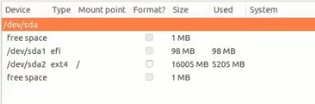 /dev/sda1 의 경우 EFI 파티션이며 /dev/sda2 의 경우 시스템의 루트가 되는 파티션입니다.