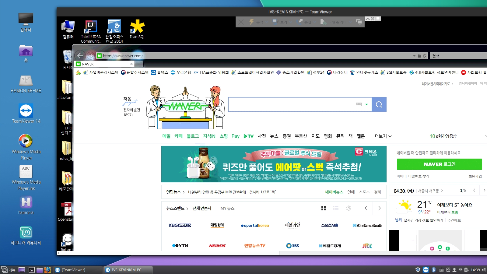 그래서 이번에는 팀뷰어를 이용한 접속을 하였습니다.