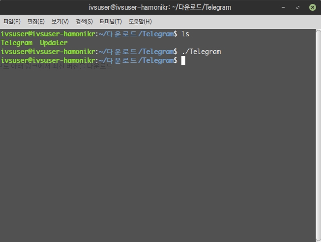 다운로드 받은 파일을 압축해제하면 다음과 같이 2개의 파일이 나오는데, 그 중 Telegram 명령어를 터미널에서 실행