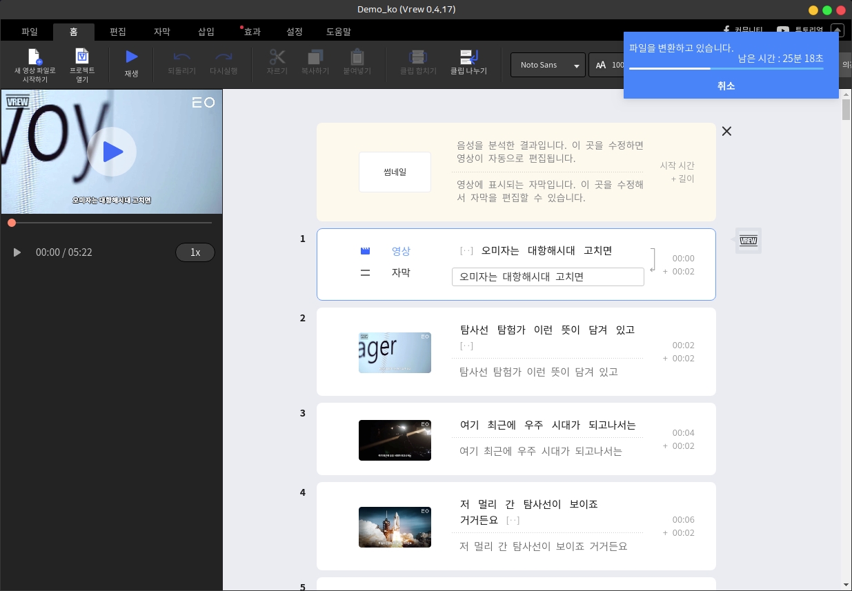 동영상에서 자동으로 자막추출 Vrew
