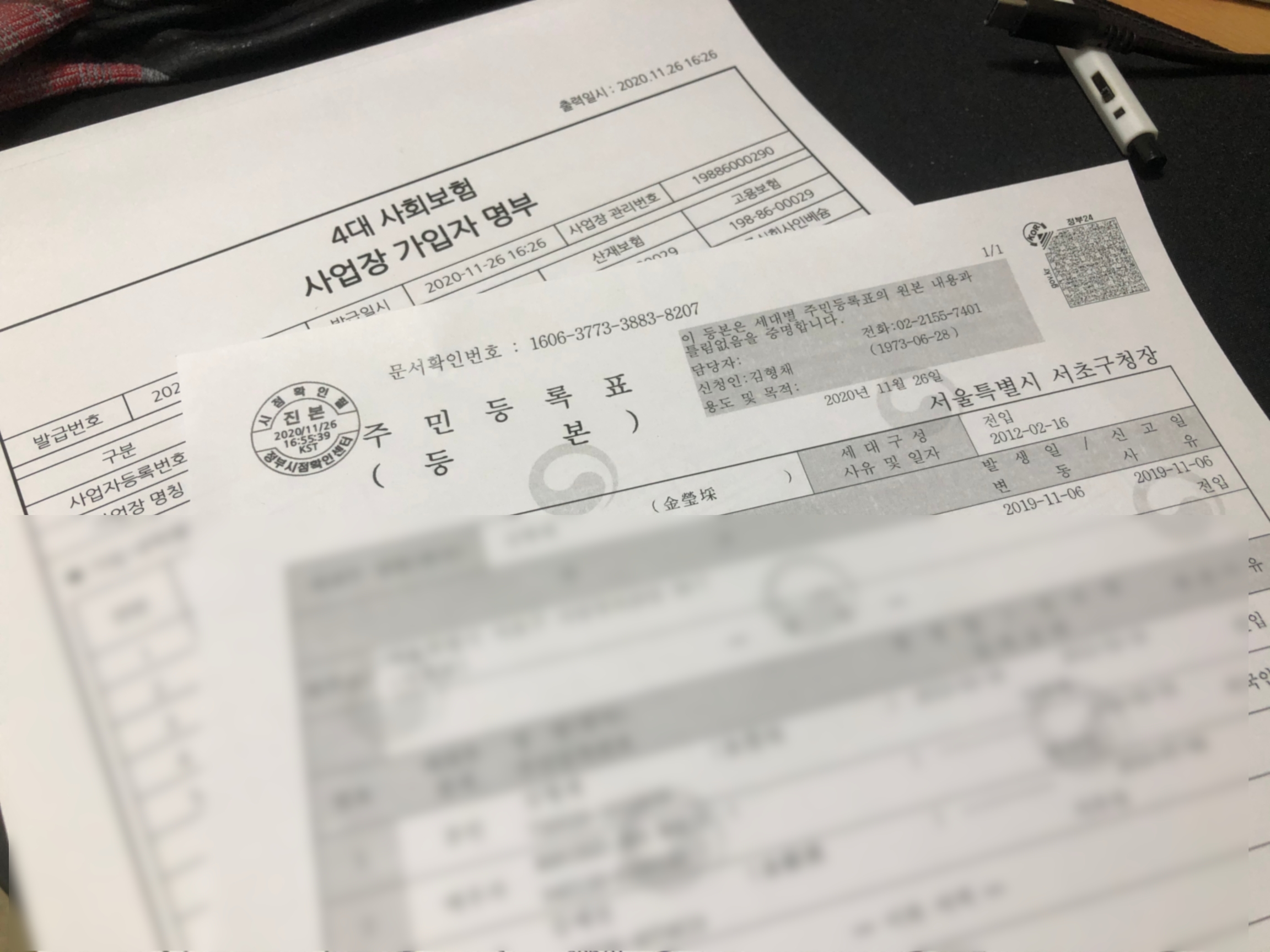 하모니카에서 주민등록등본, 4대보험가입증명서 출력하기