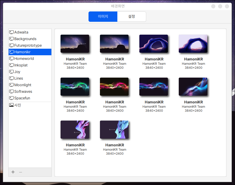 배경화면을 통해서 배경화면 이미지 변경과 설정이 가능합니다.