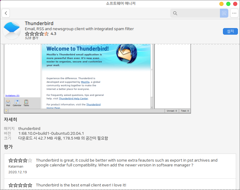 원하는 프로그램을 설치하기 위해서는 프로그램 메뉴 > 소프트웨어 매니저를 실행하면 다음과 같은 창이 나옵니다.