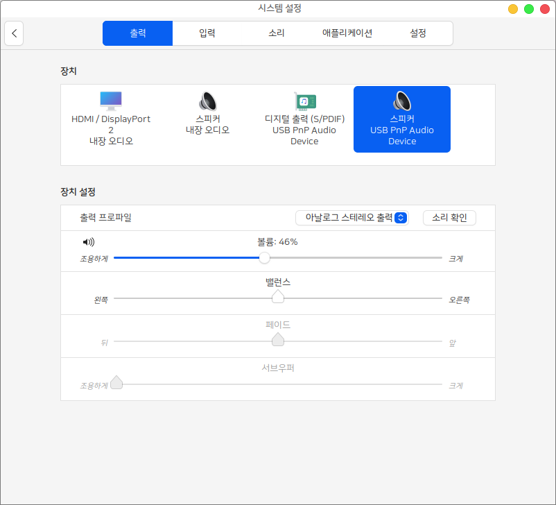 제어판 > 소리 메뉴에서는 시스템의 소리에 입력과 출력에 대한 다양한 옵션을 설정할 수 있습니다.